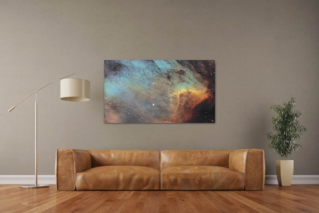 How beautiful it is! I like the idea of space photographs on the wall. Looks incredible like a painting!