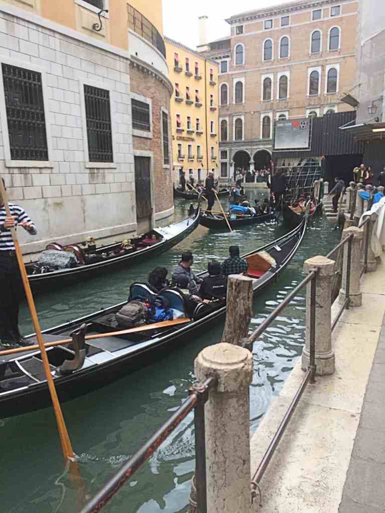 It contained the biggest numbers of gondolier boats I had ever seen. It was indeed a hub with many people waiting to get on/off and the boats circling in a big circular canal basin as they entered then left.