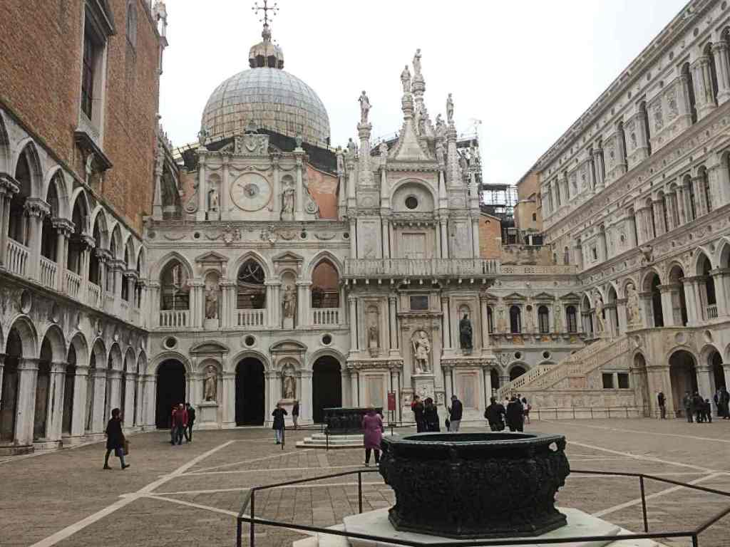 The Doge’s Palace (click here for info), dates from the 10th century and is an eclectic mix of architectural styles side by side. The Palace was constantly added to and amended with the latest building fashion. In the big marbled entrance courtyard, the facades can be anything from the 10th to 18th Century.