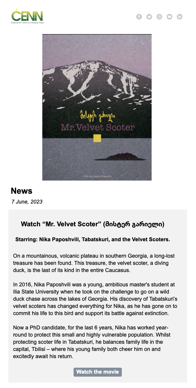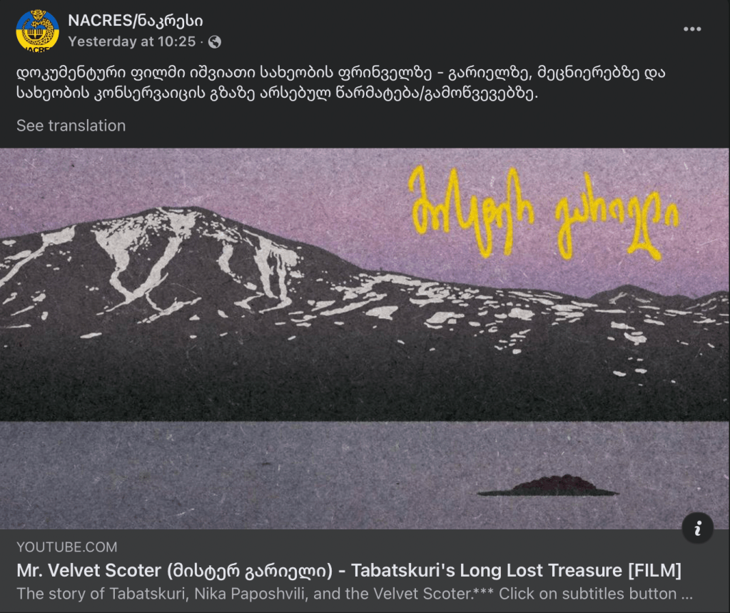 Mr. Velvet Scoter has been created in association with Garieli, Ilia State University, and Conservation Leadership Programme.